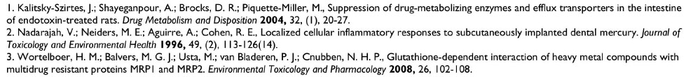 Intestinal inflammation inhibits elimination of toxins by causing a strong down-regulation of the body's natural detoxification pathways. 1 Ironically, exposure to certain toxins contributes to intestinal inflammation. For example, the corrosion of amalgam mercury results in mercuric mercury (Hg11, also called inorganic mercury) release. When swallowed with saliva, Hg11 can cause intestinal inflammation and initiate this negative feedback.2 In addition to inflammation, it has been demonstrated that a build up of metals alone slows the transport proteins.3 The data suggests that continuous removal of metals from the intestines is essential for the proper daily functioning of natural detoxification processes. The continuous removal of metals is also critical for a successful practitioner-directed detoxification program.
